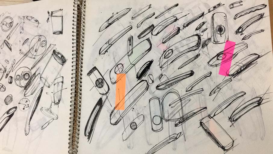 上图是我们为福建安麟智能科技有限公司设计的一款智能门窗遥控器所构思的外形草图,线条简洁流畅一气呵成。